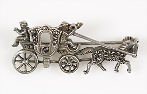 Brosche "KUTSCHE mit PFERD" 1930/40er Jahre, Silber 835/000, Markasiten, 39,5 x 17 mm