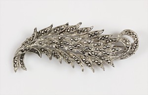 Brosche um 1930/40 "FEDER", Silber 935/000, Markasiten, L = 61,8 mm