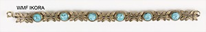 Armband "ART-DEKO" der 1930er Jahre, Silber 835/000 teilvergoldet, sig: WMF IKORA, 6 türkisfarbene Cabochons als Zwischenelemente aneinander gereihte Blätter, L = 19 cm