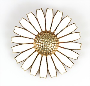 Brosche, "MARGERITEN", Silber 925/000 vergoldet, sig: AM (Anton Michelsen) STERLING DENMARK 925S, weißes Emaille, D = 42,5 mm