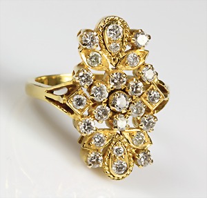 Ring, GG 750/000 nicht gemarkt (geprüft !), 25 Brillanten ca. 0,80 ct weiß, RW. ca. 54