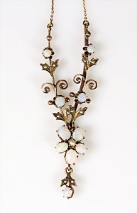 Collierkettchen um 1880/90, Anhänger GG 333/000 mit 10 Weißopalen u. 11 Stk. 1/2 Perlen; Kette GG 585/000, L = 49 cm