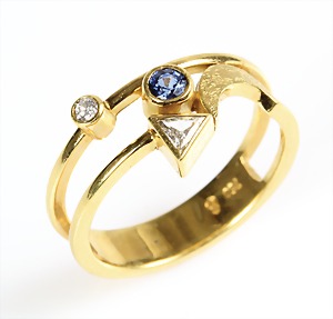 Ring, WG 585/000, 1 Brillant u.1 Diamant (Triangel) ca. 0,09 ct w-vsi, 1 Saphire, RW ca.,54, aus Geschäftsauflösung, Neupreis € 930,-
