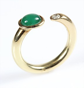 Ring, GG 585/000, 1 Smaragdcab. 7,5 x 5,5 mm, 1 Brillant ca. 0,10 ct tw/p, RW ca. 55,5