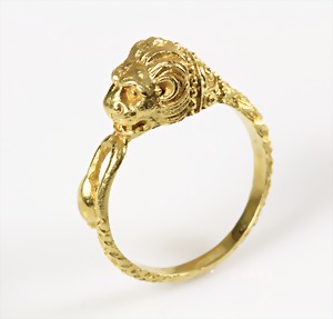Ring, "LÖWENKOPF", GG 750/000, plastisch schön ausgearbeiteter Löwenkopf, der sich in den Schwanz beißt ! RW ca. 56