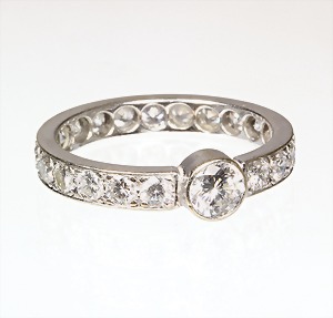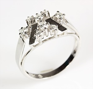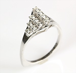 Brillant-Ring, WG 750/000, 4 Brillanten ca. 0,22 ct tw-lupenrein, 4 Stck. 8-kant Diamanten 8/8 kant 0,08 ct weiß, RW ca. 56,5