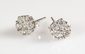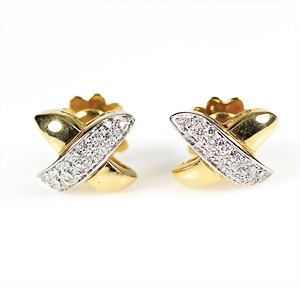 Ohrstecker "KREUZ", GG 750/000, 44 Brillanten ca. 0,35 ct tw/w-vsi/si in weiß gefasst, ca. 10 x 13 mm