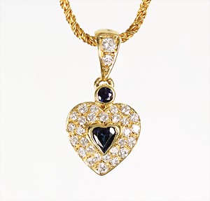 Anhänger "HERZ", GG 750/000, 30 Brillanten ca. 0,27 ct w-si, 2 Saphire, H = 20,5 mm; Kette (Fuchsschwanz, gedreht), GG 585/000 mit Karabiener, L = ca. 41,5 cm