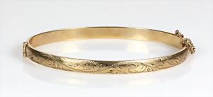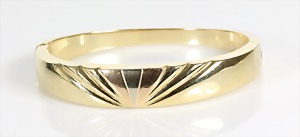 Armreif, GG 333/000, Oberfläche graviert u. trembliert, innen: 61 x 49 mm, Schnepper mit Sicherheitskettchen, total 13,3 g
