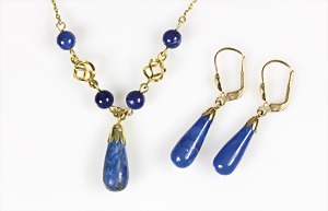 Lot: GG 333/000, Lapispampeln/Kugeln, Collier, L = 46,0 cm; Ohrhänger, H = 35 mm