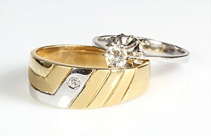 Lot: 3 Ringe, 1 Ring, GG 585/000, 1 Brillant, ca. 0,19 ct (graviert) w-si, weiß gefasst, RW ca. 59,5; 1 Ring GG 750/000, 1 Brillant ca 0,25 ct tw-vsi, (weiß gefasst), RW ca. 62; 1 Ring, GG/WG 750/000, 1 Brillant ca. 0,12 ct w-si/p, RW ca. 60