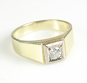 Herrenring für den kleinen Finger, GG/WG 585/000, 1 zentraler Brillant ca. 0,35 ct w-si/vsi, RW ca. 55