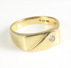 Herren-Brillantring, GG 750/000, 1 Brillant ca. 0,10 ct weiß, RW ca. 65,