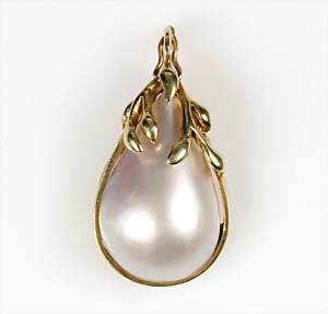 Anhänger, GG 585/000, Mabeperle (Tropfen), Schlaufe zum Öffnen, H = 27,2 mm