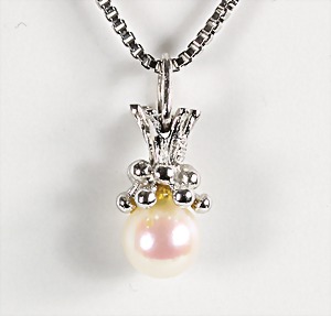 Perl-Anhänger, WG 585/000, Anhänger mit Akoja-Perle H = 16 mm; Kette, L = 42 cm