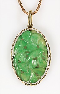 Lot: "JADE"- Anhänger, GG 585/000, H = 36 mm; Kette GG 333/000, L = 40 cm