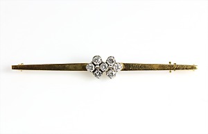 Nadel, GG 750/000, 7 Brillanten ca. 0,5 ct tw-vsi/si (weiß gefasst), Schiebesicherung, L = 66,5 cm