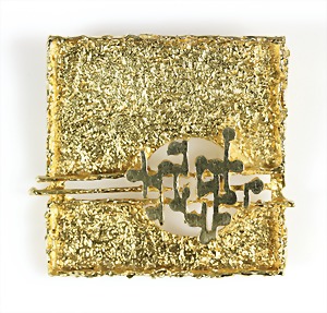 Brosche 1960/70er Jahre, GG 585/000, ca. 35,5 x 39,5 mm, total 12,7 g