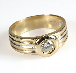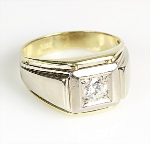 Herren- Brillantring, GG 585/000, 1 zentraler Brillant ca. 0,35 ct tw-vvsi/vsi (weiß gefaßt), RW ca. 62, total 9,6 g