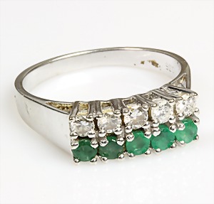 Ring WG 585/000, 6 Brillanten ca. 0,36 ct tw/w-si, 5 Smaragde facettiert, RW ca. 56