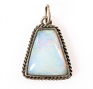 Anhänger Mitte 20.Jhd., Silber 800/000, Opal in Trapezform geschliffen, H = 27 mm