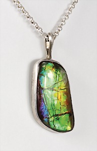 Anhänger, Silber 950/000, opalisierender Ammolith (Korit), H = 36,5 mm; Kette Silber 925/000, L = 59,5 cm
