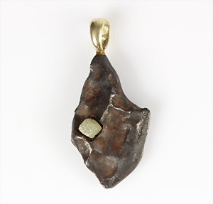 Anhänger "METEORIT", GG 585/000, Meteorit, Diamant-Kristall ca. 3,5 x 3,5 x 3,5 mm, H = 37 mm