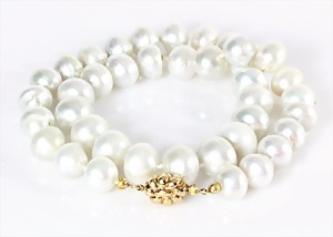Südsee-Perlenkette, Goldschließe 585/00, D = 12 -15 mm, L = 51,5 cm, leicht gedrückte Boutons mit ansprechendem Lüster