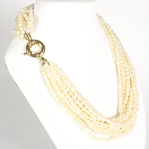 Perl-Collier, GG 750/000, große Schmuck-Schließe D = 34,5 mm, 16 Süßwasser-Perlenketten, D = 4,6 mm (1 Perlenkette), L = 43,5 cm