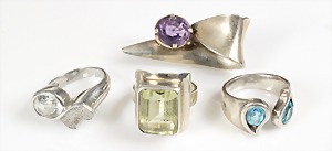 Lot Silberringe: Silber 925/000, 3 Ringe mit Lemon-Quarz, Bergkristall u. Blautopasen, RW ca. 59-60; Anhänger, Amethyst, H = 44 mm
