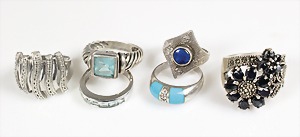 Lot: 6 Ringe, Silber 925/000, Lapis-Blautopas-Markasit, teilweise mit weißem Steinbesatz 8 Diamanten), RW ca. 1 x 52, 2 x 57 u. 3 x 60