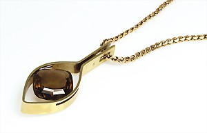 Anhänger mit Kette, GG 585/000, Anhänger, Rauchquarz H = 50,5 mm; Kette L = 62 cm, total 33,2 g