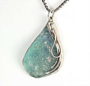 Anhänger, "RÖMISCHES GLAS", Israel, Silber 925/000, antike röm. Glasscherbe, H = 48,5 mm; Venezia-Kette L = 60 cm