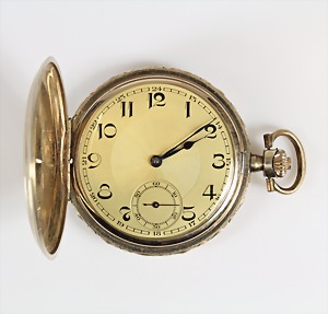 Herren-Sprungdeckel-Taschenuhr JUNGHANS 1920er Jahre, arab. Zahlen, kl. Sekunde auf 6 Uhr, gebl. feine Zeiger, Vollankerwerk, Brequetspirale mit Stoßsicherung, Gehäuse beidseitig graviert, D = 51 mm, Uhr läuft (muß gereinigt werden !)