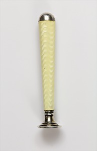 Petschaft, "JUGENDSTIL" um 1900, Silber, transluzides zartgelbes Emaille, guillochiert, H = 72 mm (ohne Monogramm !), Emaille im perfektem Zustand