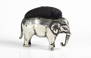 Stecknadelkissen: "ELEFANT" Birmingham (England) um 1905/06, Silber 925/000 (signiert), ca. 48,5 x 38,5 mm, vollplastisch ausgearbeitet