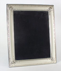 Bilderrahmen hinter Glas, Silber 925/000, Silberrahmen mit gedrücktem Dekor, B = 30,5 mm, Bilderrahmen: ca. 29,8 x 23,5 cm, rückseitig mit Samt bezogen u. Aufsteller (Bild kann quer oder hochkant gestellt werden