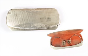 Brillenetui für "Zwicker", Silber 800/000, beidseitig graviert, Scharnierbewegung, Maße ca. 116 x 49 x 14,5 mm, total 64,5 g, Zwicker gibt es dazu !