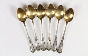 6 Stck. Moccalöffelchen um 1910, Silber 800/000 teilverg., beidseitig sehr feines Ornament, L = 9,5 cm