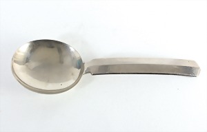 Vorlegelöffel "ART-DECO" der 1920/30er Jahre, Silber 800/000, sig: 800 Adlersymbol (Frankfurt ?), L = 20,7 cm, Griff mit zarter Hammerschlagstruktur, schönes geradliniges Art-Deco !