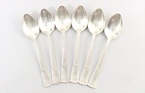 Lot: 6 Kaffeelöffel JUGENDSTIL um 1900, WMF N, I/0, Entwurf ALBERT MAYER, versilbert, Monog: HB, L = 13,5 cm