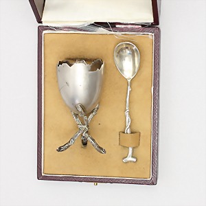 Eierbecher u. Löffel um 1900 in orig. Karton, Ag 800/000, Gravur: Dorle, H = 73,5 mm