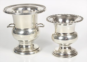 2 kl. Gefäße England Mitte 20.Jhd. (für den Amerikanischen Markt), STERLING Silber, 1 Gefäß mit Henkelgriffen H = 81 mm, D = 77 mm, 1 Gefäß ohne Griffe H = 65 mm, D = 64 mm, schwer gearbeitet !