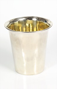 forschöner, zierlicher Becher um 1880, Silber, innen vergoldet, sig: FG (Meistermarke), H = 65,5 mm, D = 62,5 mm