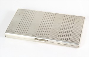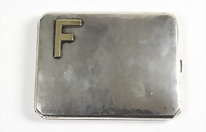 Zigarettenetui, ART-DEKO der 1920/30er Jahre, Silber 835/000, aufgenieteter Buchstabe: F in GG 585/000, Maße: 104,7 x 80,0 x 12,8 mm,, total 136,8 g
