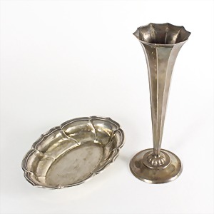 Lot: Anfang 20.Jhd., Silber 800/000, sig: kl. Becher/Pokal (als Symbol), 1 Schälchen mit geprägtem Rand, ca.14 x 9,3 cm; 1 kl. Vase, H = 15,3 cm, total 100,6 g