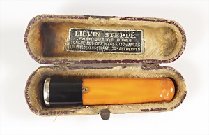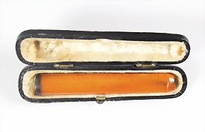 Zigarrenspitze Anfang 20.Jhd., Bernstein "BUTTERSCOTCH", Spitze dkl, L = 80,5 mm, total 12,3 g, Originalschatulle