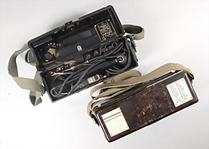 Lot: 2 Feldtelefone, gefertigt von : Stöcker & Co Leipzig, Süddeutsche Apparatefabrik 1937-1939, Gehäuse Bakelit mit Originalgurten zum Abnehmen, 1 dkl. Braun, 1 x braun marmoriert, Maße: ca. 28,5 x 17 x 10 cm (FF 35 A), sehr guter Erhaltungszustand !