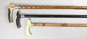 Lot: 3 Stöcke, Mitte 20.Jhd., 1 x Griff mit Hirschgeweih; 1 x Griff aus Horn u. 1 x Griff aus Elfenbein