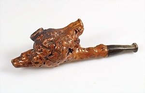 Jagdpfeife um 1900, Jagdhund u. Eber, L = 12,3 cm, stilistisch schön aus dem Holz rausgearbeitet !